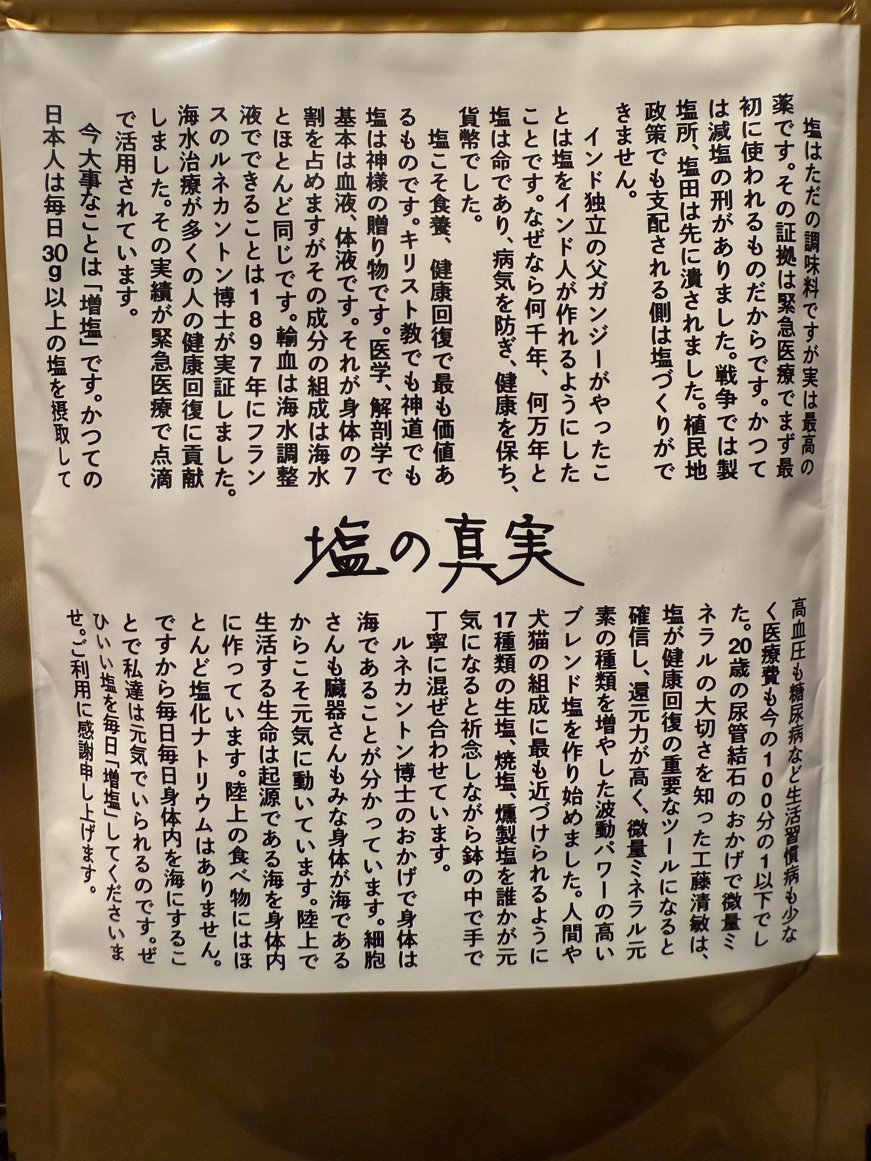 原材料:塩、黒胡麻、黒米、竹炭、わらび、真菰、