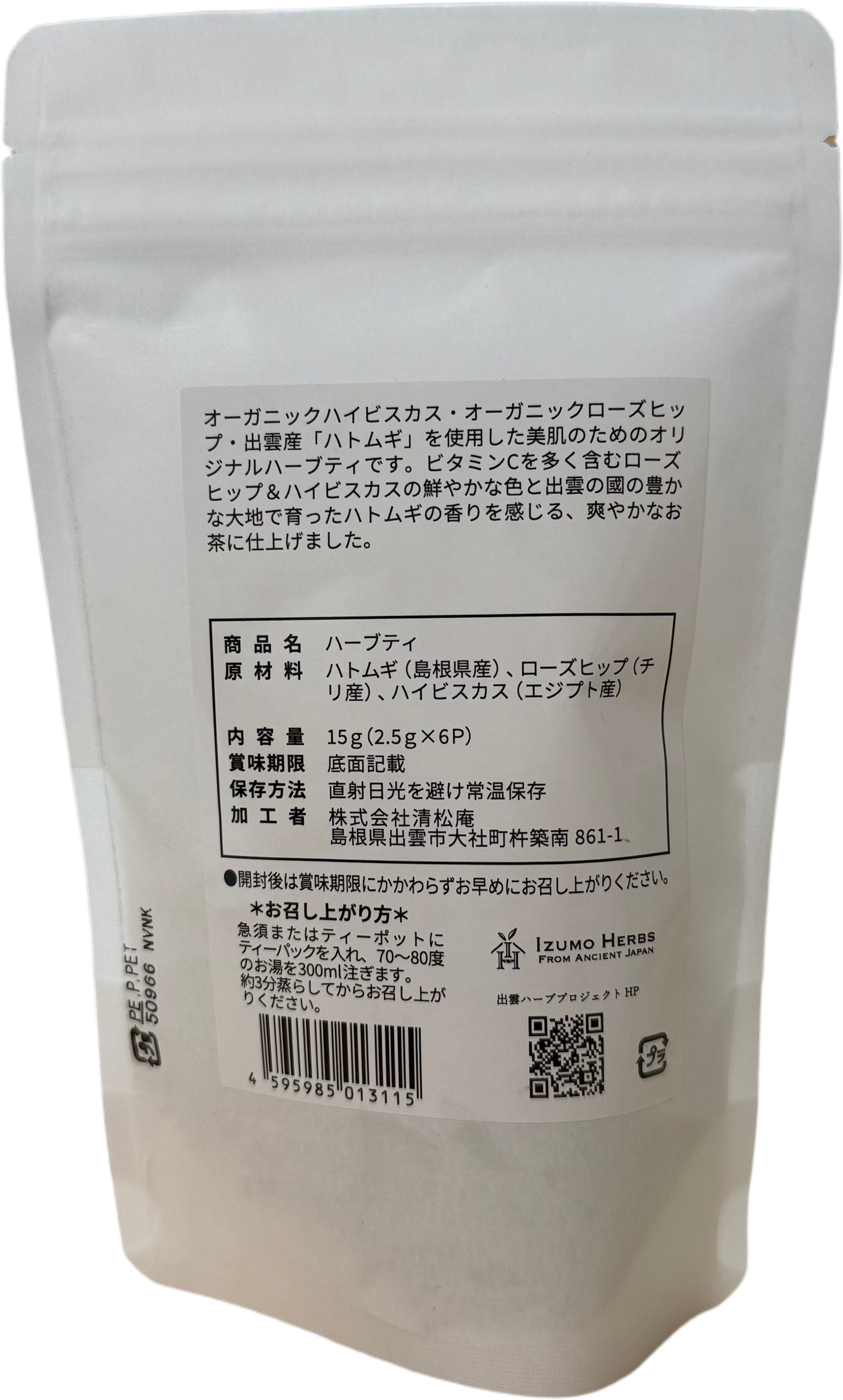 ビタミンCを多く含むローズヒップ&ハイビスカスの鮮やかな色と出雲の國の豊かな大地で育ったハトムギの香りを感じる、爽やかなお茶に仕上げました。