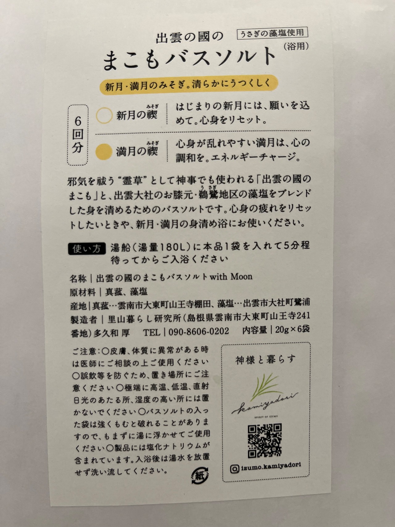 出雲の國のまこもバスソルト with Moon (うさぎの藻塩使用) 20gx6袋入り